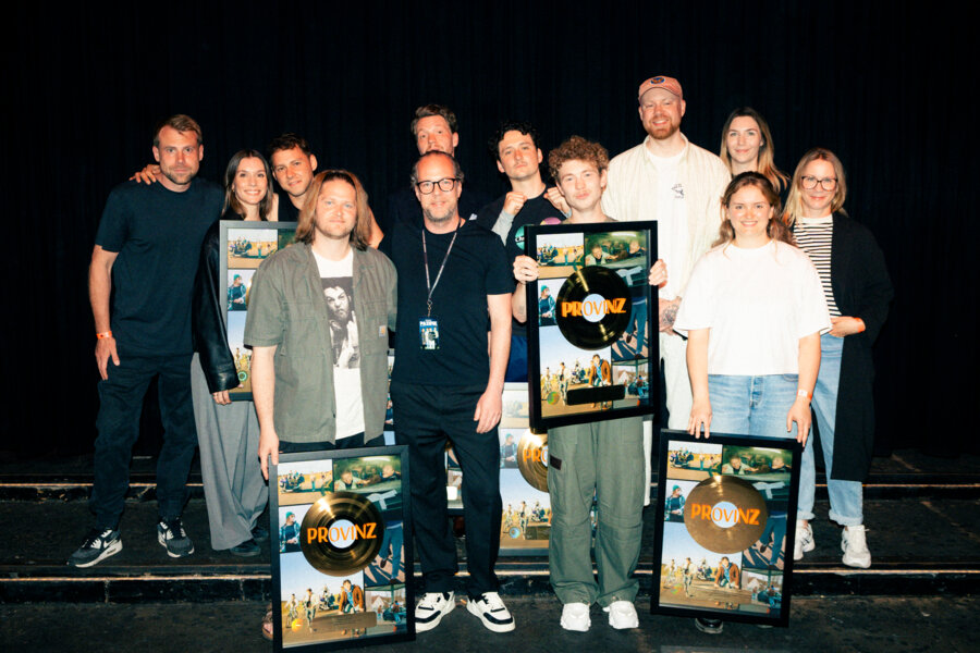 Hintere Reihe vlnr.: Sam Bittner (VP A&R Warner Music Central Europe), Lea Londa (Director Marketing Pop/Alternative Warner Music Central Europe), Robin Schmid (PROVINZ), Tim Tautorat, Vincent Waizenegger (PROVINZ), Niklas Otten (Management PROVINZ), Caroline Steinigk (VP Marketing Warner Music Central Europe), Jana Denecke (VP Media & Digital Accounts Warner Music Central Europe) © Rufus Engelhard